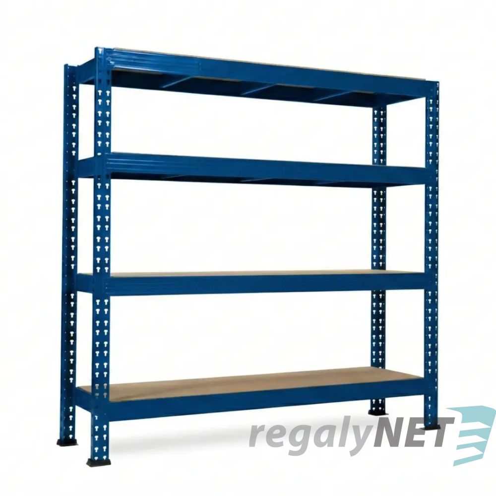Nekonečný průmyslový regal 4 - policový s lakovanou kovovou konstrukcí, policemi z DTD s nosností jedné police 800 kg. Lze napojovat na sobě. Hlavní modul + doplňkový modul .