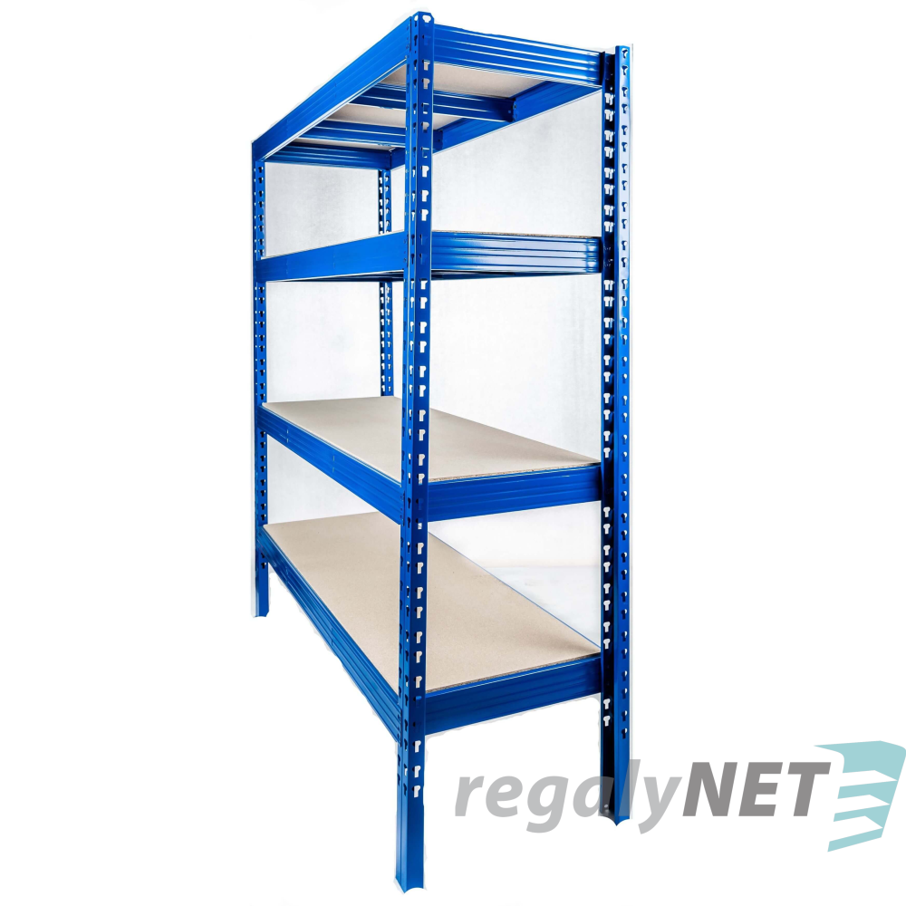Nekonečný průmyslový regal 4 - policový s lakovanou kovovou konstrukcí, policemi z DTD s nosností jedné police 800 kg. Lze napojovat na sobě. Hlavní modul + doplňkový modul .