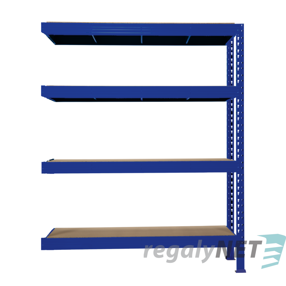 Doplňkový nekonečný průmyslový regal 4 - policový s lakovanou kovovou konstrukcí, policemi z DTD s nosností jedné police 800 kg. Lze napojovat na sobě. Doplňkový modul + Hlavní modul .