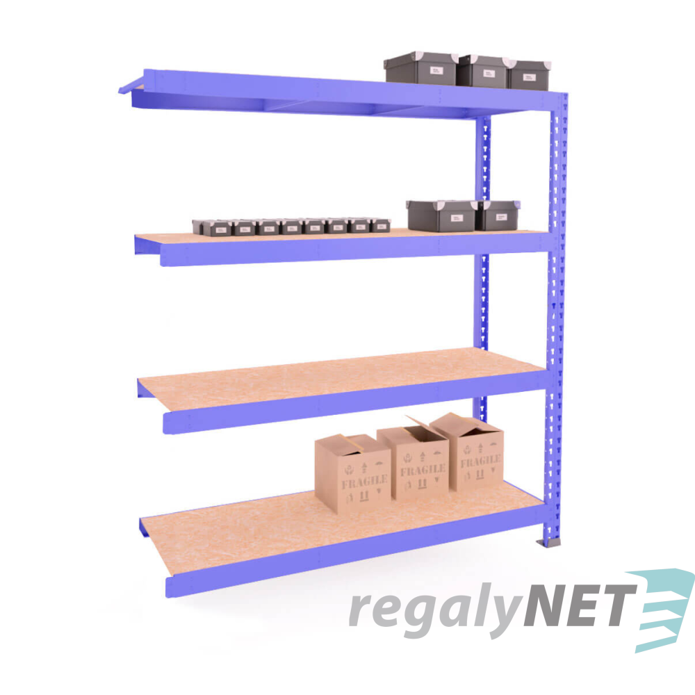 4 - policový průmyslový regál s DTD police . Vysoká nosnost na polici 800 kg .