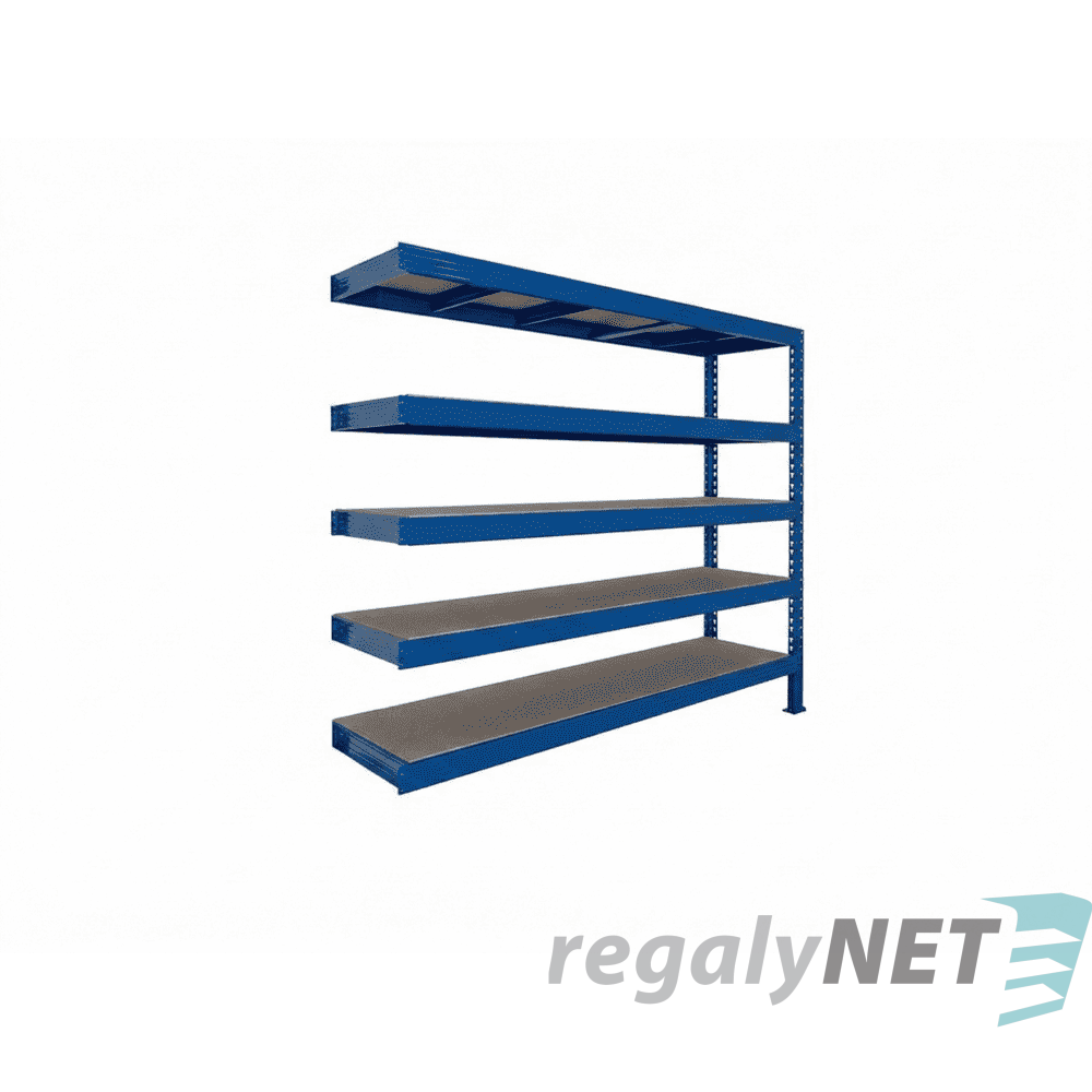 Přístavek (doplňkový modul) k regálům s 5 policemi z DTD je ideálním řešením pro sklady, dílny i průmyslové haly, kde je kladen důraz na vysokou nosnost, stabilitu a variabilitu. Každá police má nosnost až 600 kg, takže bez problémů zvládne i těžké zboží nebo materiál.