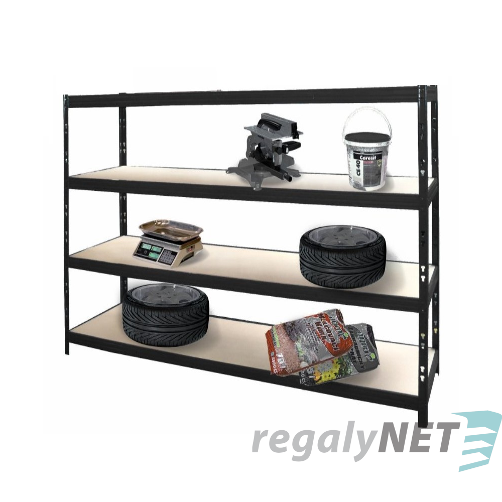 Lakovaný policový regál v barvě černé RAL 5003  s policemi z masivní dřevotřísky. Policový regál vyniká vysokou nosností, pevností a odolností. A to nejen díky rozvržené pevné konstrukci, ale i kvalitní oceli, ze které je vyroben. Jednotlivé police regálu navíc umístíte podle potřeb tak, abyste do něj uložily veškeré zboží .